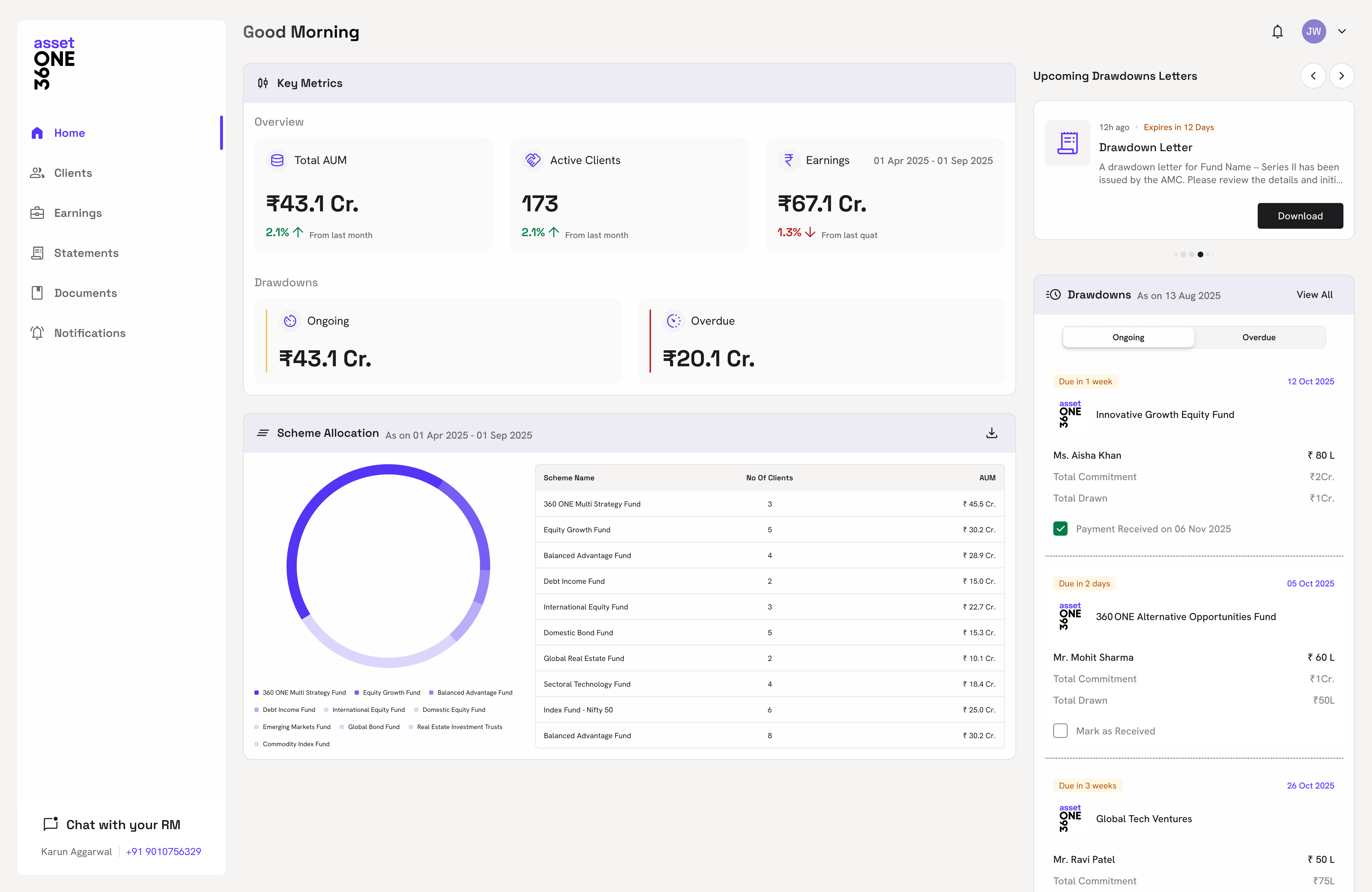Elevate platform is for funds distributors to manage their client's investments across 360 ONE Asset AIF Funds