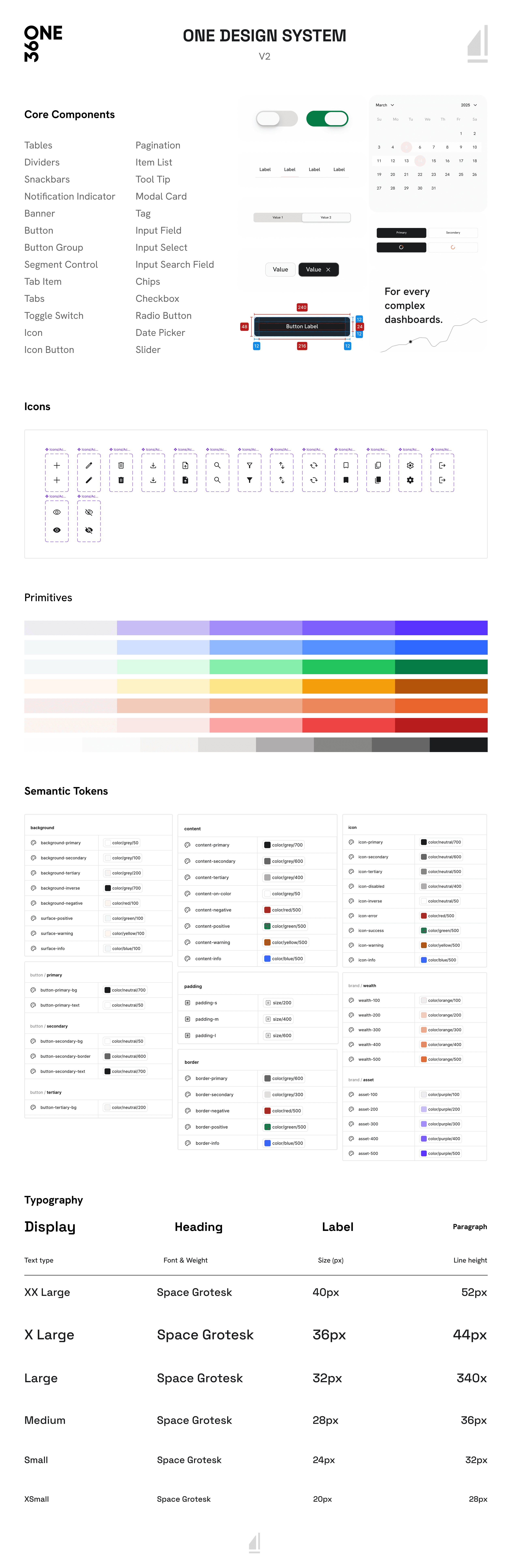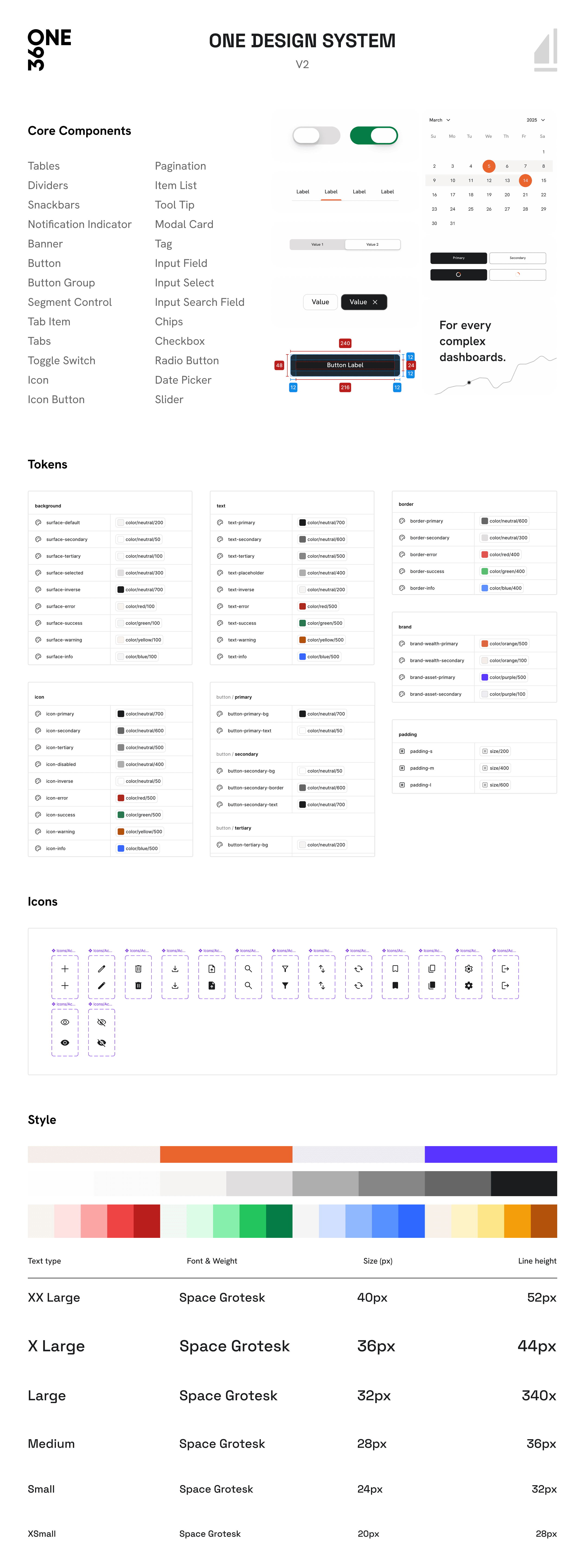 ONE Design System defines the foundation of user interfaces, every product design at 360 ONE WAM starts with this system. Each platform at 360 are data heavy platforms. A core principle of the system is a strong focus on accessibility needs with right guidelines as per WCAG. It brings all products at 360 ONE WAM under single, unified framework.